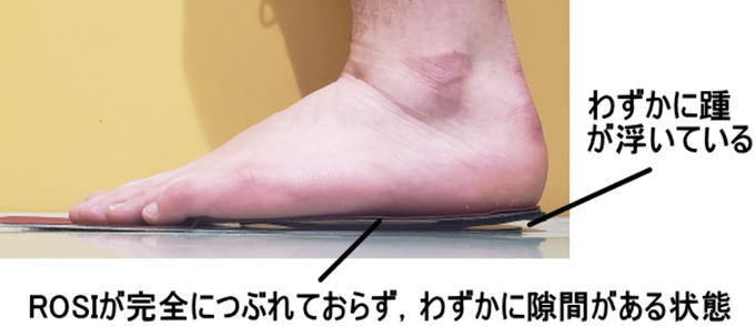 両足で均等に立ってもらったときに,ROSIが完全につぶれておらず,わずかに踵部分が浮いている状態が適正なROSIです. |