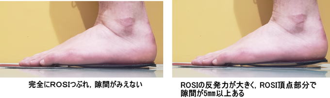 両足で均等に立ってもらったときに,ROSIが完全につぶれておらず,わずかに踵部分が浮いている状態が適正なROSIです. |
